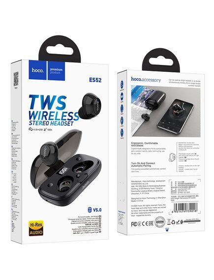 Hoco (ES52) Casti Wireless, Ear Buds, BT 5.0, 180h StandBy, 350mAh, Delight, BLACK