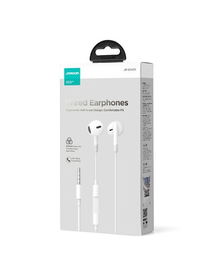 Joyroom (JR-EW01) Casti cu Fir, In Ear, 3.5mm, 1.2m, Mic & Volume Key, HiFI, WHITE
